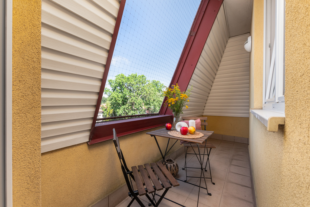 The apartment is located on Mehoffera Street, right next to the building there is a bus stop where lines 133 and 211 run.