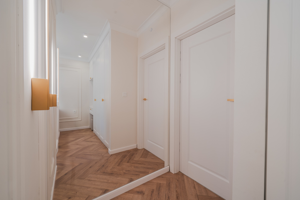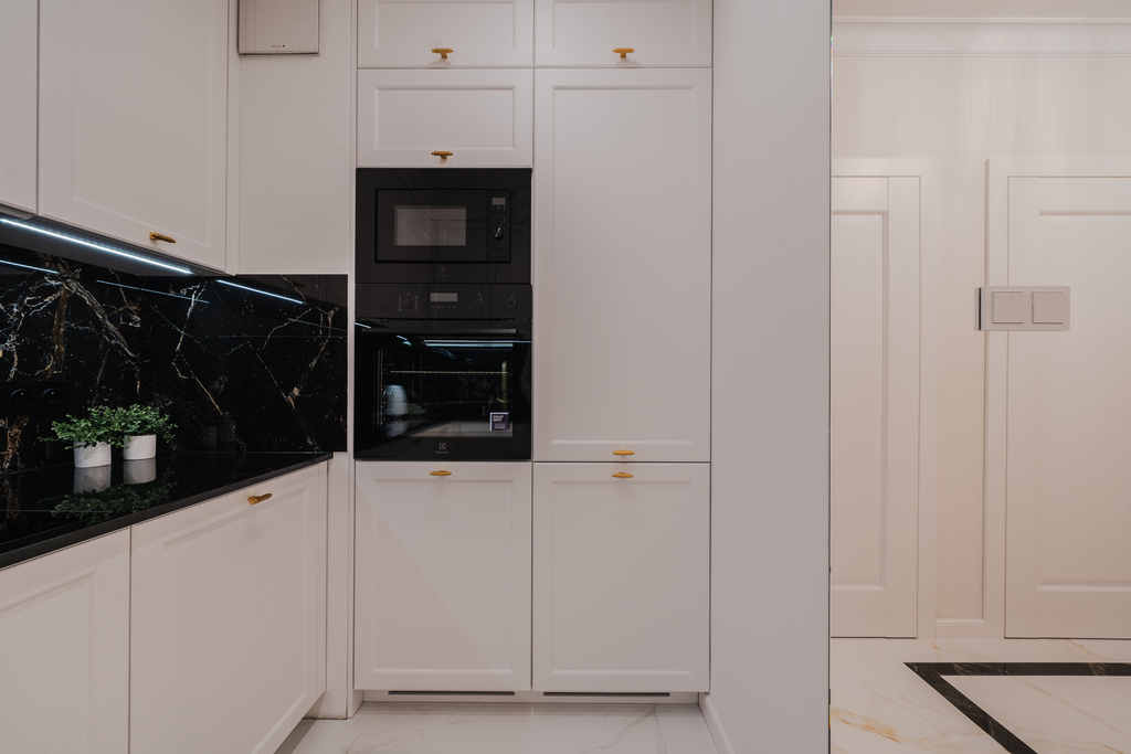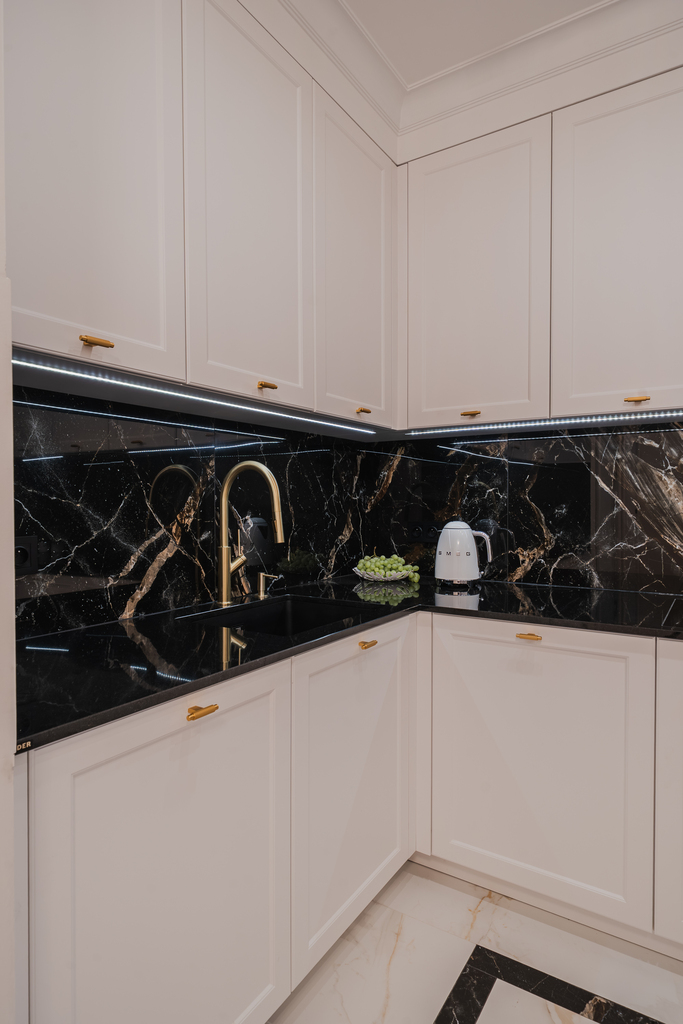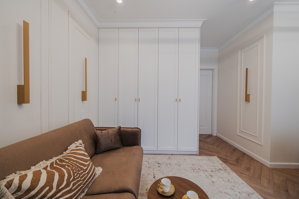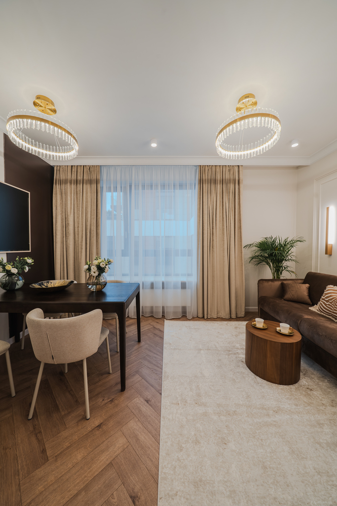 Ready to move in immediately, after a comprehensive renovation. Numerous built-in fixtures and full equipment allow you to move in without additional costs. The living room has a pull-out sofa with a full-size mattress, which increases the functionality of the space, allowing guests or household members to sleep comfortably. The kitchen is equipped with natural marble countertops, which give the interior elegance and timeless style, and high-quality appliances emphasize the standard of finish.