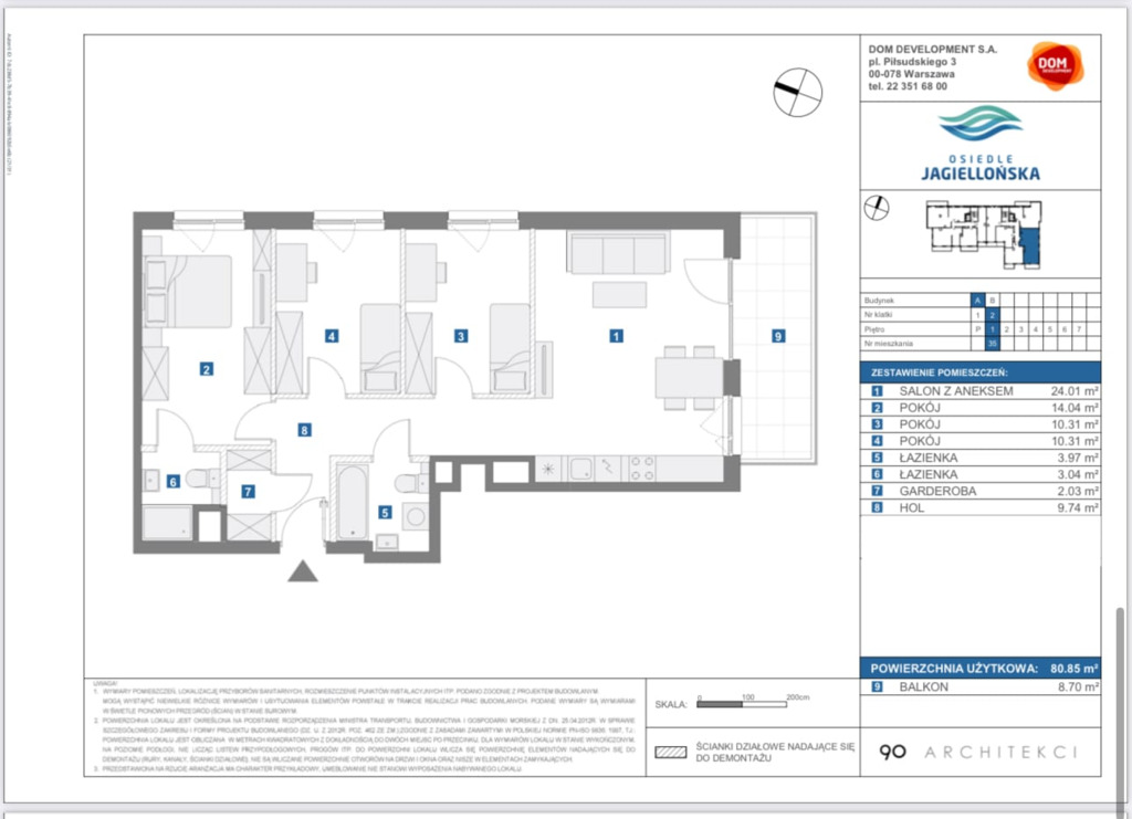 I am offering a spacious 4-room apartment in a Dom Development investment from 2023. A gated community with security in the stairwell and a playground on the premises.