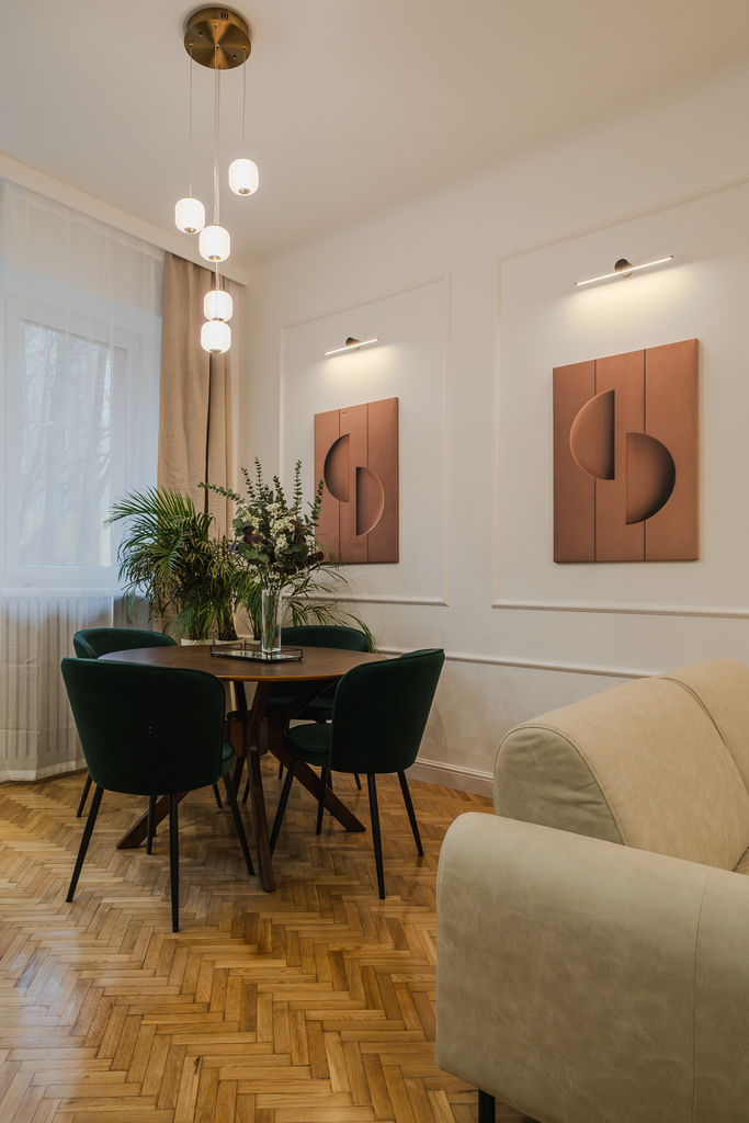 The apartment is located in the very center of the city, which guarantees access to the most important service and recreational facilities. The central location means that the area combines the advantages of city life with an intimate character, ensuring convenience in everyday life. Nowy Świat Street and the Zachęta Art Gallery are within walking distance.