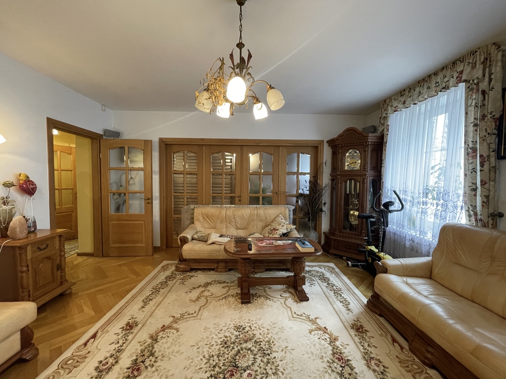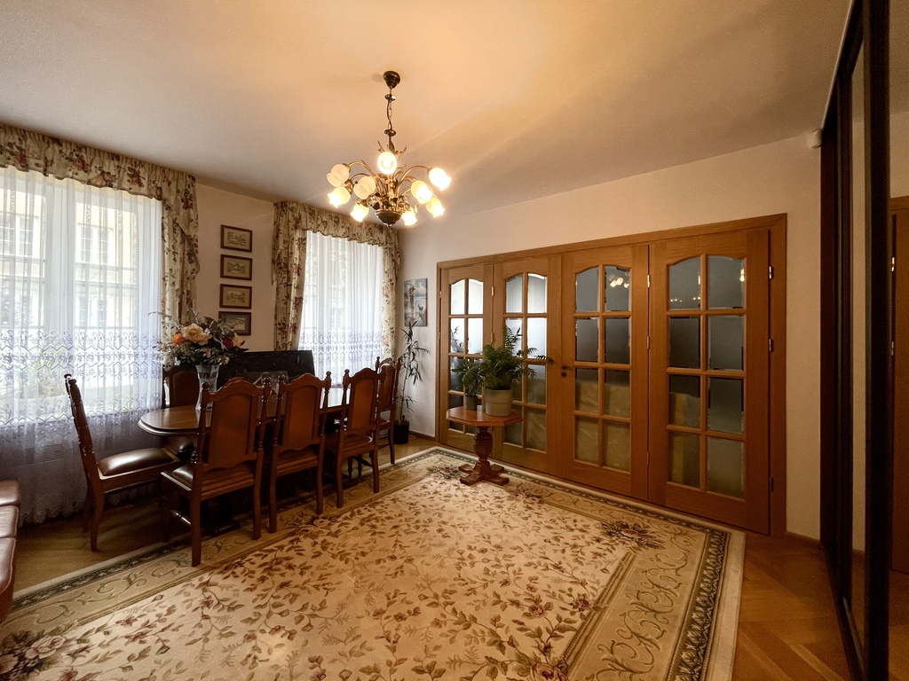 • przestronnego salonu / biblioteczki o powierzchni  43,5 m², oddzielonego po całej szerokości drzwiami. ( 22.5 m² i 21 m² mają dwa pomieszczenia składające się na salon ).
