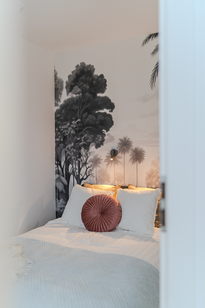 Składa się z salonu z półotwartą kuchnią, oddzielnej sypialni, wydzielonego miejsca na garderobę i łazienki.
