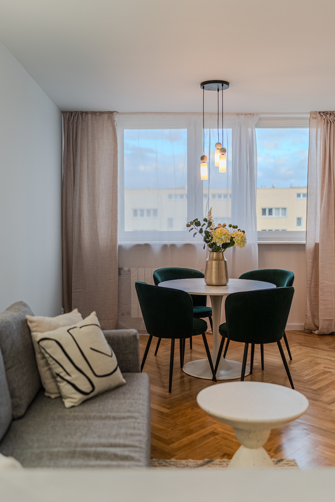 The apartment is located in a green part of Bielany, near Bielański Forest, Galeria Młociny, the University of Physical Education, and the Cardinal Stefan Wyszyński University.