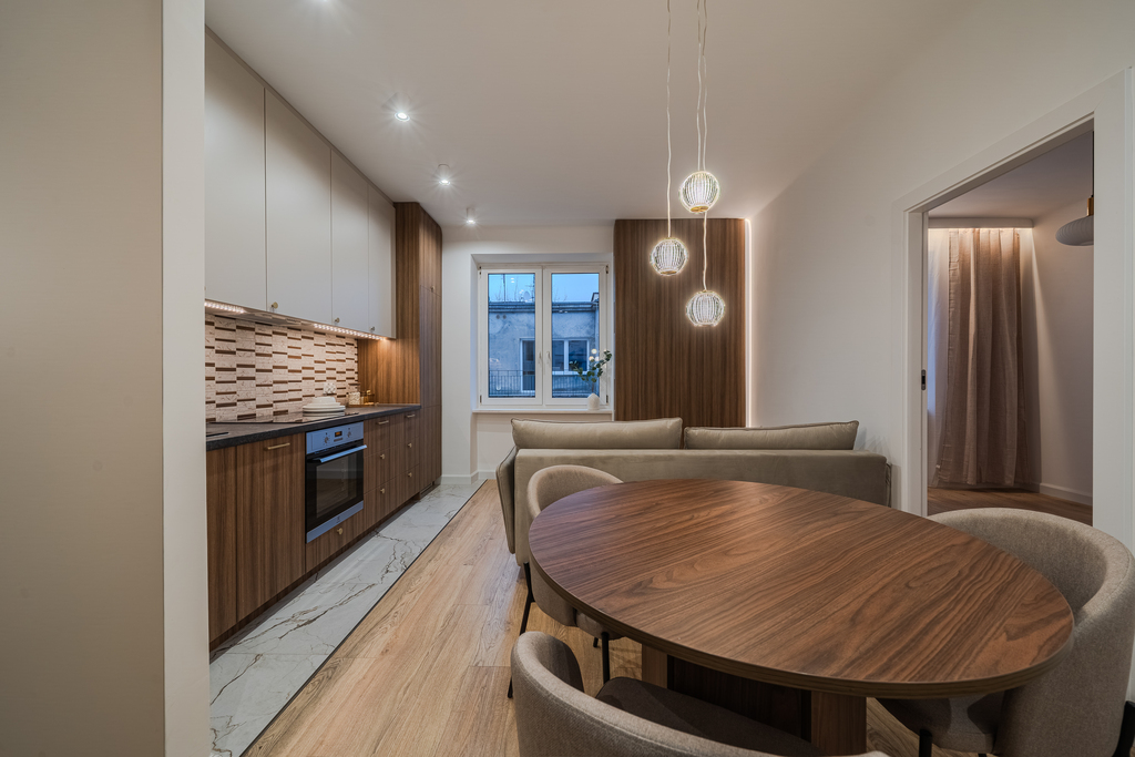 The apartment is located in the heart of Stary Mokotów, one of the most desirable locations in Warsaw. There are numerous grocery stores, restaurants, cafes, pastry shops, and service outlets in the immediate vicinity. There are schools, kindergartens, and universities in the area, such as the Warsaw School of Economics and the Warsaw University of Technology. The proximity of green areas, such as Pole Mokotowskie, allows you to catch your breath in the fresh air, and the nearby Warszawianka swimming pool makes it easy to introduce a little activity into your life or relax for those who enjoy saunas.
